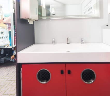 5 Damentoiletten1 Herrentoilette 3 Urinale Zum Abspielen von Musik ist ein bluetoothfähiges Endgerät erforderlich.